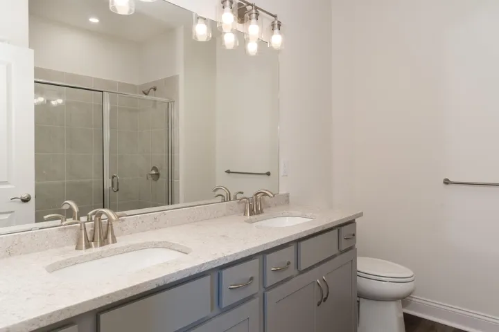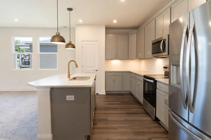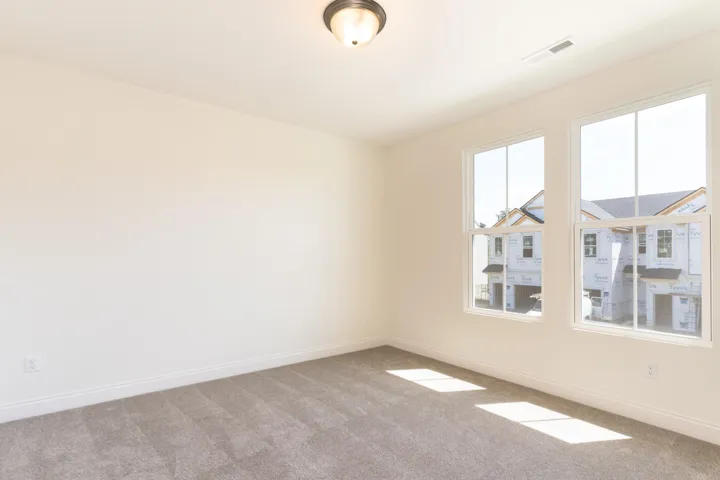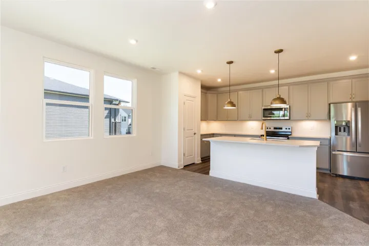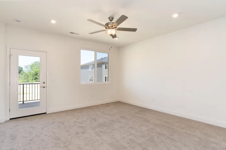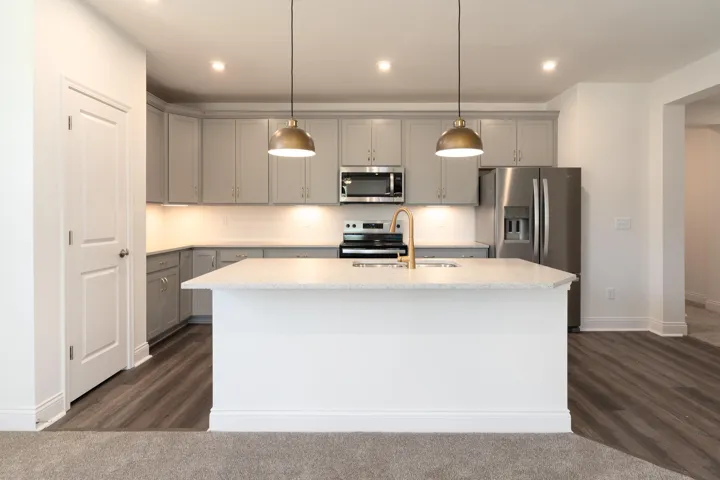 This spacious second-floor condominium offers an open and airy living space, featuring 9′ ceilings throughout. The secluded primary suite provides a private retreat, complete with a walk-in closet and an ensuite bathroom offering a double-bowl vanity and a walk-in shower. The roomy kitchen is a chef’s dream, equipped with a large island for seating and overlooks the dining and family rooms, making it perfect for entertaining. With stainless steel appliances, ample cabinet storage, and a generous pantry, the kitchen is as functional as it is stylish. Step outside onto your covered deck and enjoy the outdoors in comfort, whether it’s morning coffee or evening relaxation.