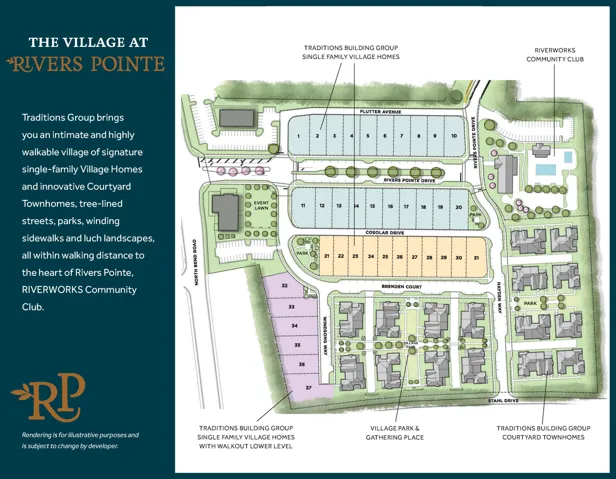 New construction by Traditions Building Group in the spectacular new Rivers Pointe Estates community. The Southport features a single-floor lifestyle living design with 3 bedrooms, 2 baths with an integrated and open Great Room, a private Study, a Gourmet Kitchen with a spacious island, and a Dining area with surrounding views to a covered Terrace. attached rear 2-car garage. Exceptional highly-amenitized master-planned community in Hebron with 6 miles of hiking/equestrian trails and a new clubhouse with community pool and pickle ball courts. The residence is located in a highly walkable park-like village setting.