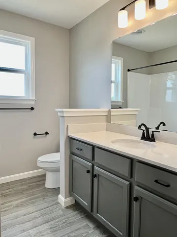 Brand New Energy-Efficient Home in Hunter’s Ridge by Arlinghaus Builders! Step into the popular Lancaster floor plan—designed for modern living with thoughtful upgrades throughout. This spacious, open-concept home features a stunning kitchen with a large island, granite countertops, a walk-in pantry, and seamless flow into the living and dining areas—perfect for entertaining. A dedicated study with elegant French doors offers privacy and flexibility for a home office or den. Upstairs, you’ll find a conveniently located laundry room and generously sized bedrooms, each with walk-in closets. The luxurious primary suite includes a raised ceiling, a beautifully tiled shower, and two walk-in closets for ample storage. The basement comes ready with a rough-in for a half bath, offering potential for future expansion. Exterior highlights include a stylish brick wrap with vertical and shake siding, a spacious patio for outdoor living, durable Trane gas heat, and a tankless water heater for endless hot water. Located in the desirable Hunter’s Ridge community with low HOA fees. Don’t miss your chance to own this exceptional home—schedule your private showing today!