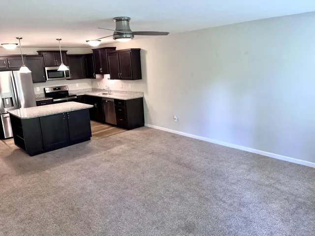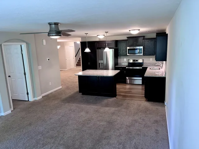 Welcome to the Paragon Mill community in Burlington, Kentucky! This Monticello plan built in 2020 has everything you need to move right in. The large kitchen with stainless appliances, numerous cabinets and granite countertops also boasts a large center island ideal for entertaining. The open floor plan offers plenty of space, and the dining room could be used as an office or more. The spacious living room walks out to a patio with wooded view. The primary bedroom provides an adjoining bathroom and a walk-in closet. Nestled in the end building, this unit is convenient to the airport, shopping and more. Not to mention the amenities that Paragon Mill has to offer including clubhouse, fitness center and pool. Come check it out today!