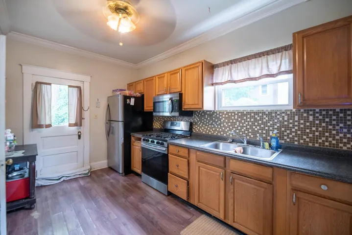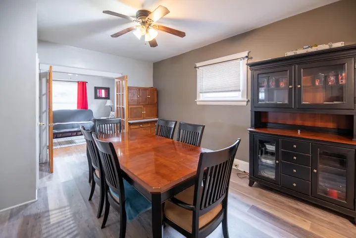 Spacious Offering Lots of Potential in a Great Location near Dining and Shops. Laminate & Hardwood Flooring throughout. Kitchen Features Pantry, Tile Backsplash & Walk-out to Fenced-in Yard. Sizable Dining and Living Rooms. Main Level Full Bath Offers Walk-in Tile Shower & Updated Vanity. Primary Bedroom has Hardwood Flooring. Unfinished Lower Level has Half Bath and Abundant Storage Opportunities. Within Walking Distance of Area Stores and Sports Complex. Once a Duplex, this Home Could Easily be Converted with Dual HVAC Systems.