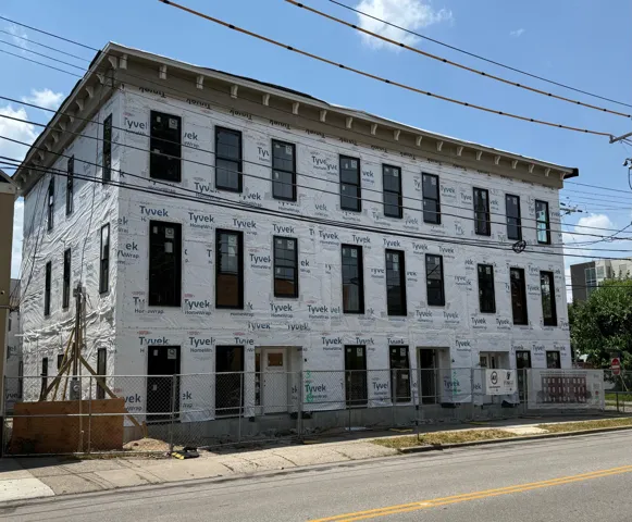 A rare opportunity to own a brand-new, high-end brick townhome in the vibrant East Row Historic District—truly the first of its kind! This stunning three-level residence features soaring ceilings, premium finishes, abundant natural light, and elegant spaces designed for modern living. The lower level offers an entry hall with coat closet and storage, a rear-facing two-car garage, and a study or optional bedroom with full bath. The main level boasts an open floor plan with gas fireplace, spacious living and dining areas, a home office, half bath, and walkout to a cantilevered deck. The chef’s kitchen includes an oversized island, quartz countertops, GE Café stainless appliances, and a large pantry. Upstairs, two expansive bedroom suites each offer full baths. The primary suite features two oversized walk-in closets, a double vanity, private water closet, and nearby laundry room. A three-story elevator shaft with electrical hookup is included for optional installation now or later. Built-in smart wiring throughout. Select customizations available during construction. Estimated completion: Q4 2025.