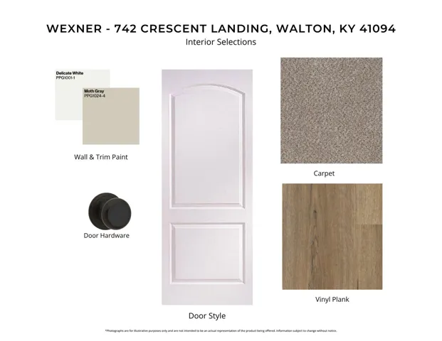 Trendy new Wexner plan by Fischer Homes in beautiful Crossings at Walton Square featuring penthouse style living with an island kitchen with stainless steel appliances, upgraded multi-height cabinetry with soft close hinges, gleaming granite counters and all overlooking the spacious family room with walk-out access to the covered deck. Formal dining room. The primary bedrooms includes an en suite with a walk-in shower and walk in closet. Additional bedroom and hall bath. Attached 1 bay garage.