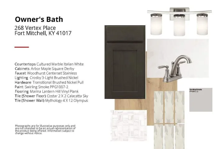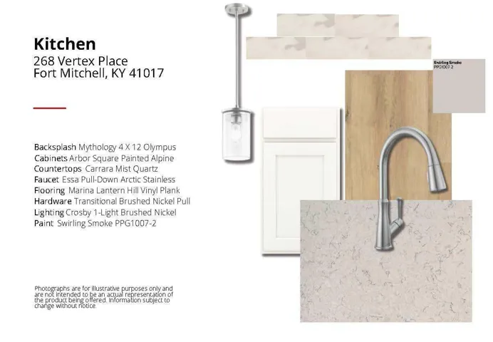 New construction by Fischer Homes in the beautiful community of The Pinnacle at Fort Mitchell, featuring the stunning Camden floorplan. This designer home offers an open-concept kitchen with island, walk-in pantry, lots of cabinet space and premium quartz countertops. Spacious family room expands to light-filled morning room. Private study with French doors off of entry foyer. First floor owner’s suite with attached private bath featuring dual vanity sinks, walk-in shower, and oversized walk-in closet. First floor laundry room. Additional first floor bedroom, hall bath. Full partially finished basement with bedroom, full bath and wet bar. Attached two car garage.