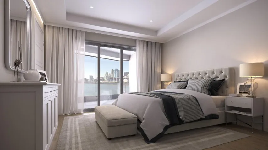The Boardwalk Residences at Ovation feature 88 premier luxury condominium homes across 3 buildings situated along the Northern Kentucky riverfront. These exceptional residences provide unparalleled, panoramic views of the Cincinnati skyline and the Ohio and Licking Rivers, seamlessly blending the serenity of a private enclave with the vibrancy of an active urban lifestyle. Designed for single-level living, each home includes 2 bedrooms, 2 bathrooms, and an open-concept layout focused on comfort and sophistication. Kitchens feature upscale brands Sub Zero, Wolf and Asko appliances with smart technology. Floor plans are designed to highlight breathtaking views, with riverfront private balconies outfitted with translucent glass handrails for seamless indoor-outdoor enjoyment. Residents enjoy private, direct elevator access from a secure, reserved parking garage, providing convenience and peace of mind. Each home boasts elegant, top-of-the-line finishes and a maintenance-free lifestyle. This home is a one-of-a-kind offering in our region, where the most expansive and picturesque views of downtown Cincinnati meet luxury, accessibility, and exclusivity.
