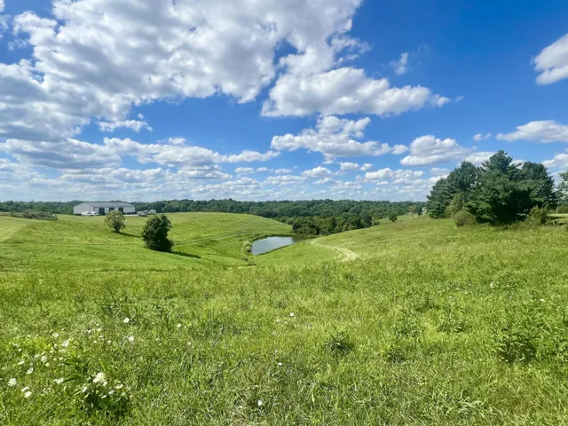 REMARKABLY BEAUTIFUL 27+ ACRES with a total of 829′ of road frontage! Features a pond and creek at the back of the property with a 48 X 100 METAL BUILDING – FRAMED FOR 4 BR, 2 BA LIVING QUARTERS WITH A KITCHEN AND GREAT ROOM IN THE LOWER LEVEL!!!!!