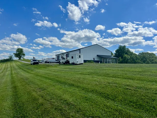3 14′ tall garage doors with 2 walk thru doors. Perfect for utility trucks, work trucks, etc.
