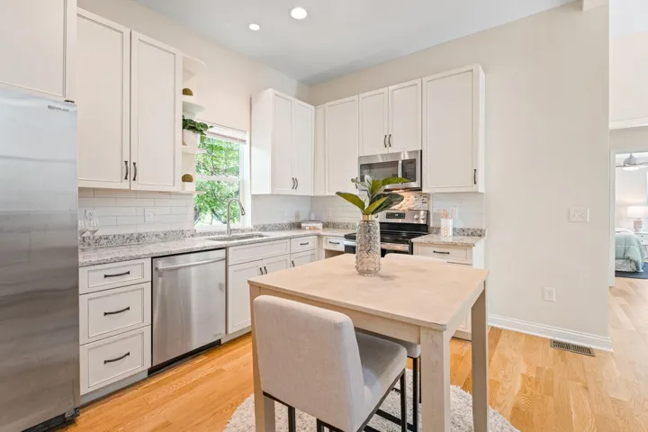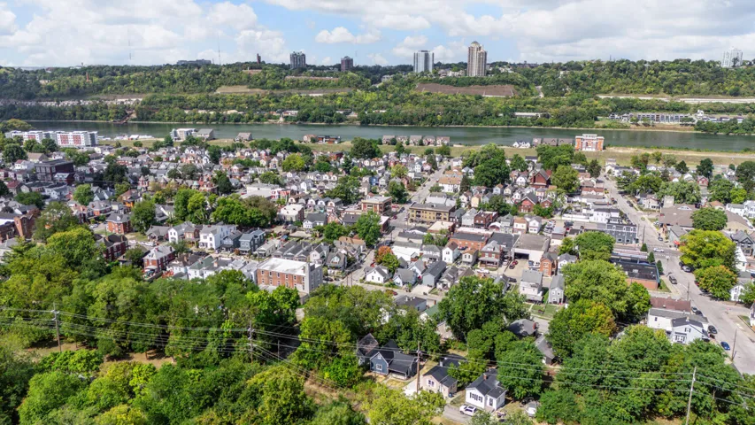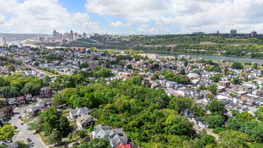 A welcoming front porch opens to a flexible floor plan with high ceilings and hardwood flooring in the main living areas. The kitchen features upgraded cabinetry with pantry storage, stainless steel appliances, granite countertops, and space to dine. The rare first-floor primary suite includes a walk-in closet and an ensuite luxury bath with dual vanity. Upstairs, the second bedroom offers space for a study, while the finished lower level adds a third bedroom and a recreation room with walkout to the backyard. Off-street parking, a private patio, and a tiered yard extend the living space outdoors, complemented by a fantastic opportunity with the included second buildable lot – ideal for a new home or garage. Additional highlights include fresh paint, new carpet, newer roof and mechanical systems (2023), all in a prime location with easy access to Downtown Cincinnati.