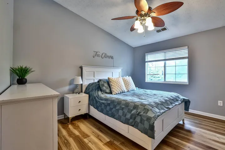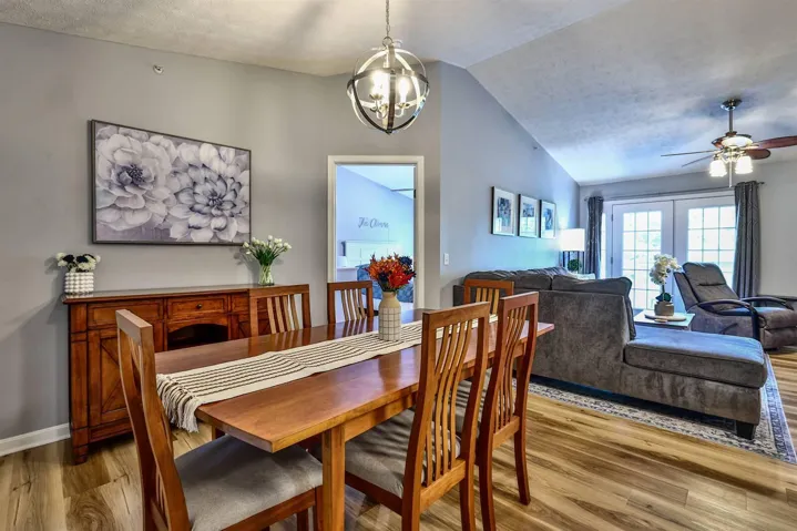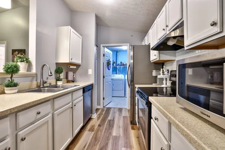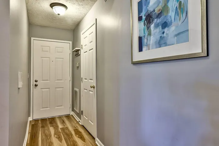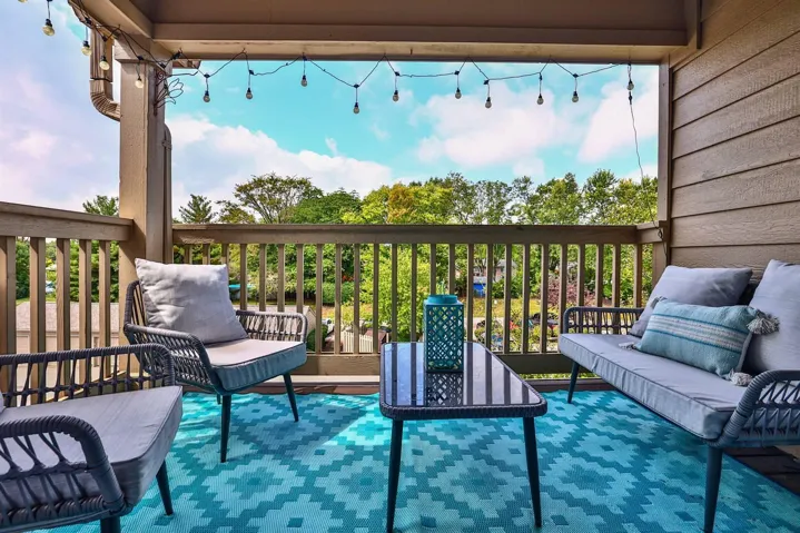 Experience the ease of condo living right in the heart of Burlington! This inviting home features updated LVP flooring throughout, soaring cathedral ceilings, and a cozy fireplace with a brand-new mantle. Step out from the spacious living room to your private balcony—perfect for morning coffee or relaxing after a long day. Both bedrooms include walk-in closets for ample storage, with even more storage available in a dedicated unit down the hall. Additional updates include modern light fixtures and new laundry room flooring. Enjoy the convenience of direct garage access plus an assigned parking spot. The Darlington Farms community offers resort-style amenities including a clubhouse, pool, fitness center, and tennis courts—all just minutes from the airport, shopping, and dining.