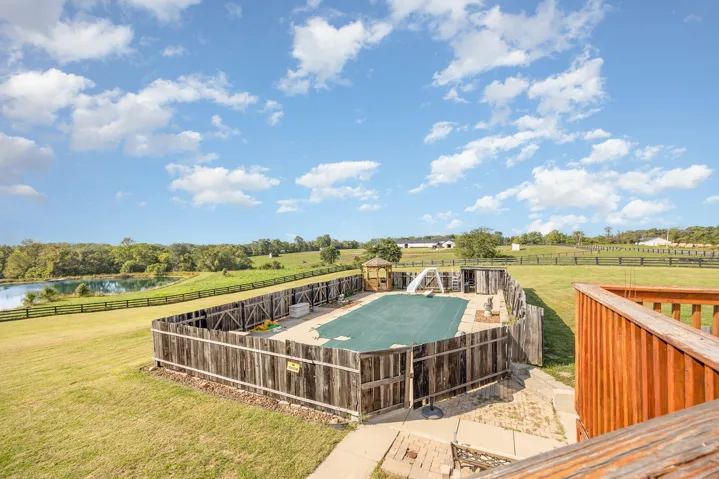 Enjoy panoramic views of a neighboring horse farm and tranquil pond from your expansive deck. The acreage is cut for hay, offering low-maintenance rural beauty. The cleared land can be used for small livestock and gardening.