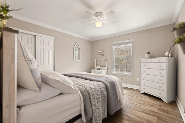 Immaculate and totally updated two story home on 10+ acres. Too many upgrades to list them all! Granite and solid counter tops on counters/vanities throughout. Flooring on first level is all hand scrapped hardwood and ceramic tile. Great room with wood burning fireplace, kitchen has all stainless steel appliances. Second level features luxury vinyl plank flooring, new five inch base trim and crown moulding throughout. Gorgeous master bath has designer soaking tub and large walk in shower. Large bonus room over garage could make 4th bedroom. Upper deck off great room, lower deck walk out from family room, newly finished lower level with media area and full bath. 20×40 barn for three horse stalls.