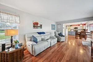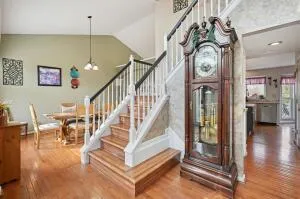 Welcome to this beautifully maintained 4-bedroom, 3.5-bath home featuring a finished lower level and an inviting multi-tier deck. The main floor boasts gleaming floors, a cozy fireplace, and a modern kitchen with stainless steel appliances. The finished lower level includes a versatile flex room and extra living space. Step outside to relax or entertain on the expansive deck surrounded by a peaceful setting. A perfect blend of comfort, style, and functionality!
