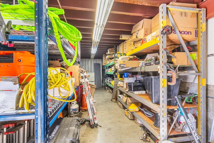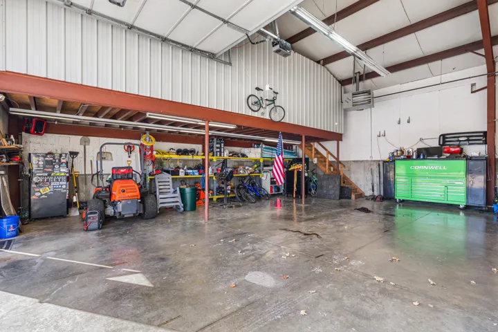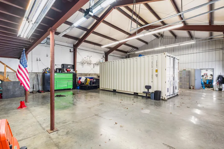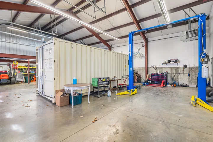 Discover a versatile commercial property featuring a robust red iron building, complete with a 3-bay garage boasting substantial 12×12 foot doors and durable 18-inch concrete slabs. Inside, you’ll find finished upstairs rooms on both sides, perfect for offices, storage, or a variety of business uses. A dedicated storage room adds even more convenience.