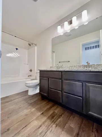 Home Highlights: Extra Parking pad for ample parking , Covered deck perfect for relaxing or entertaining, High ceilings and luxury vinyl plank flooring throughout the main living areas, Gourmet kitchen with granite countertops, large island, Double ovens, gas cooktop and stylish cabinetry, First-floor laundry for added convenience, Spacious first floor Owner’s Suite: Features a large tiled shower, soaking tub, double vanity, and linen cabinet. A private retreat designed for relaxation, Second Floor Features: 3 generously sized bedrooms, each with walk-in closets, Full bathroom and versatile loft space ideal for a home office, playroom, or lounge, Energy-Efficient Features: Durable brick exterior, High-performance Trane gas heating system, Tankless water heater for endless hot water and lower utility cost.