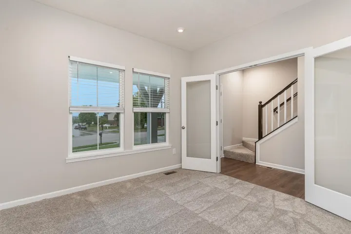 The gourmet kitchen is a standout feature, complete with a large island, beautiful granite countertops, and stainless steel appliances. For remote work or quiet study, the private home office with French doors provides an ideal, dedicated workspace.