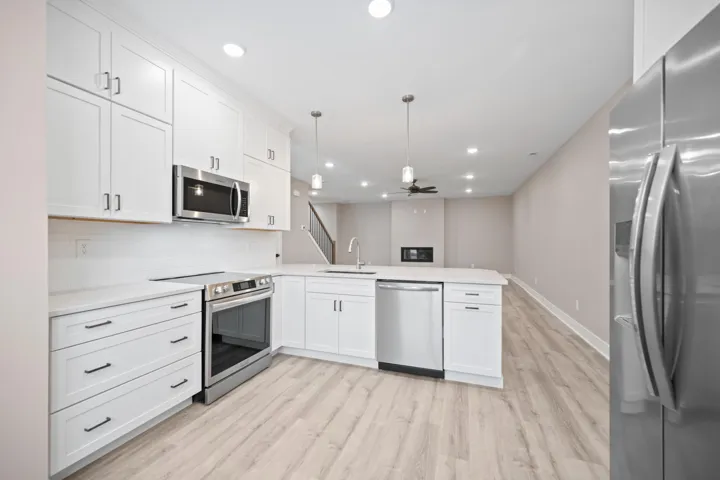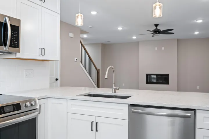 Cutter Construction is excited to present its newest luxury living opportunity, perfectly positioned near the Cincinnati waterfront. Site of Homearama 2023 in Newport, KY, this newly finished unit showcases modern design elements throughout. The first floor provides an inviting entertainment area complete with a custom Illusion built-in gas fireplace and Showdown Elite LVL hardwood flooring, flowing seamlessly into an eat-in kitchen featuring quartz countertops, soft-close cabinetry, a spacious pantry, and main-level laundry. Upstairs, you’ll find two generously sized bedrooms, each with its own full bathroom. Every unit includes an oversized, attached two-car garage with a side entrance and added privacy for extra storage. Come experience this beautiful unit today!