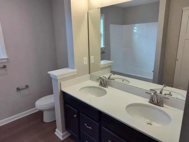 Brand new home by Arlinghaus Builders in Alderbrook community. The impressive Waterson plan boasts a well-designed layout with a 1st floor primary bedroom and a variety of upgrades throughout. The kitchen is spacious, featuring an island, staggered cabinetry, granite countertops, and a walk-in pantry. A convenient laundry right off entry from garage, walkout basement and deck are just a few highlights. The primary bedroom offers a luxurious bath with a tiled shower and double bowl vanity. The basement walkout includes a rough-in full bath. Outside, enjoy a brick-wrapped exterior, a generous deck and a long driveway for ample parking. A must-see!
