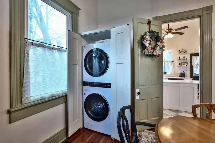 Storybook Craftsman Style Bungalow. Amazing features include: *Large, sprawling front yard for entertaining. *Quaint, covered porch to relax *Sweet entry with character and lots of natural light *Family room and Dining room feature hardwood floors–large doors with old world charm *Gourmet Kitchen with ample cabinet space—hard surface counter top—floating shelves—island—and stainless steel appliances. *private deck over looking treed lot *beautiful 1/2 acre lot *newer HVAC *newer A/C. *new roof *front gutters *lighting *Stackable W/D on main floor. Don’t miss out on this darling home, filled with character galore. Home Sweet Home.