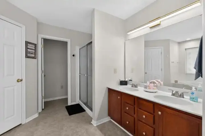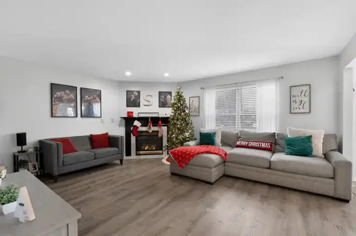 This home is completely move-in ready with tons of updates and a great layout for families. Main level has brand new flooring, a cozy living room with fireplace, formal dining room, and an updated kitchen with white cabinets and stainless appliances. Breakfast area walks right out to the backyard.Upstairs has a HUGE primary bedroom with vaulted ceilings and a private en-suite featuring a jetted tub, double vanity, and separate shower. Two more bedrooms.Finished basement is amazing for entertaining — bar area, gym space, movie area, and tons of storage.Located in a quiet, friendly neighborhood in Burlington, close to schools, restaurants, and shopping.